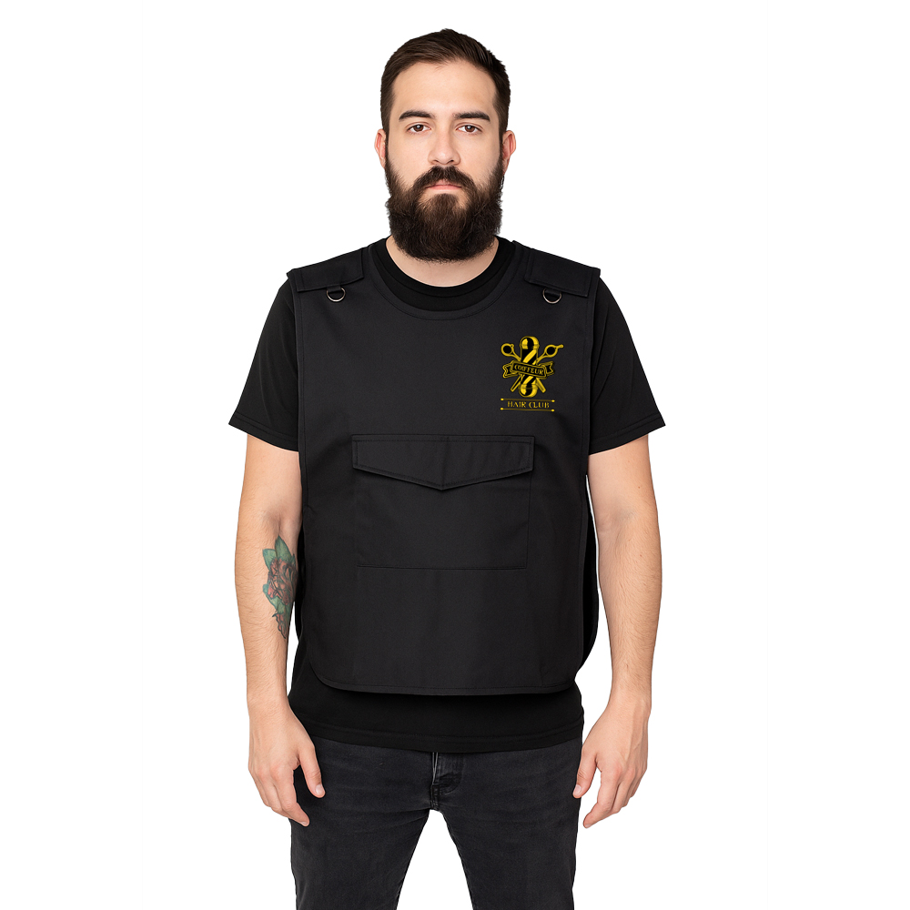 Ayobi Atak Yelek Berber Önlüğü Siyah Renk Hair Club Logo Baskılı
