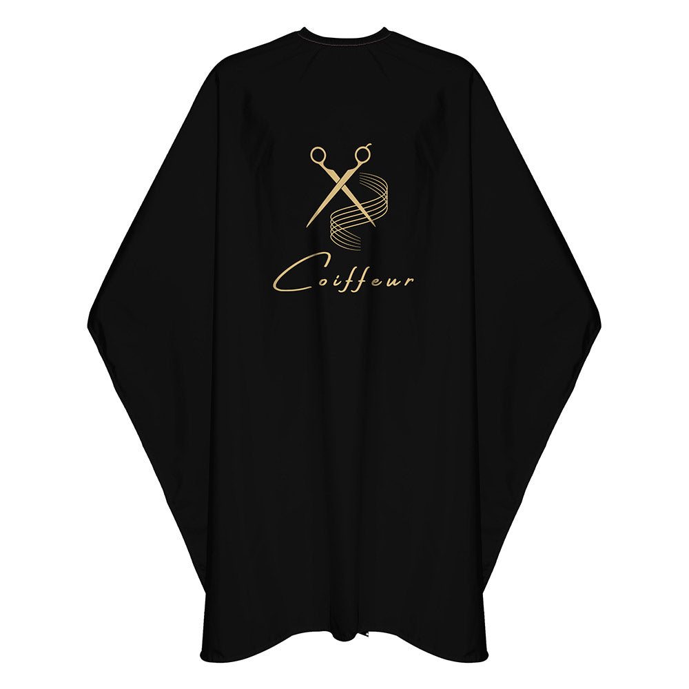 Berber Önlüğü Penuar Taffeta Kumaş Siyah Renk Kuaför Baskılı Tıraş Saç Kesim Önlüğü
