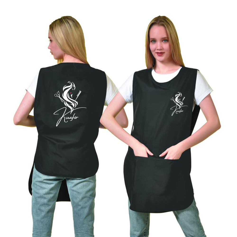 Berber Kuaför Önlük Jile Yelek Kuaför Baskılı Önlük Siyah Renk Leke Tutmaz Kumaş